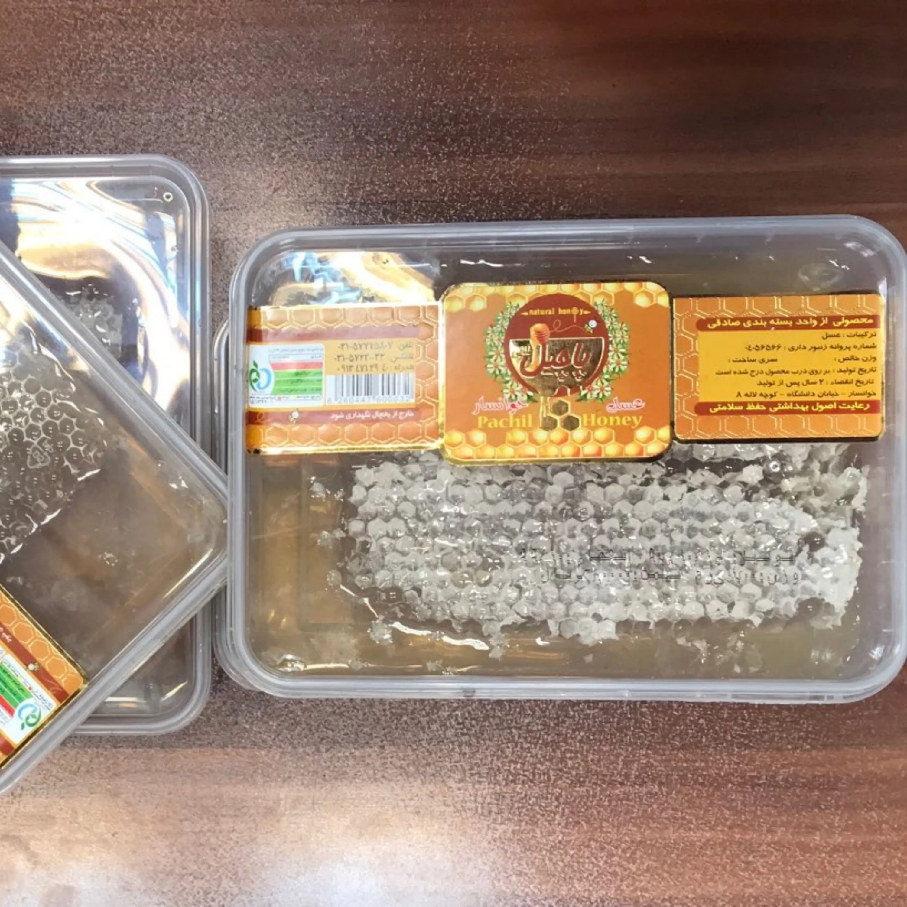 عسل پاچیل طلایی 700 گرمی مومدار 40گیاه برداشت تازه