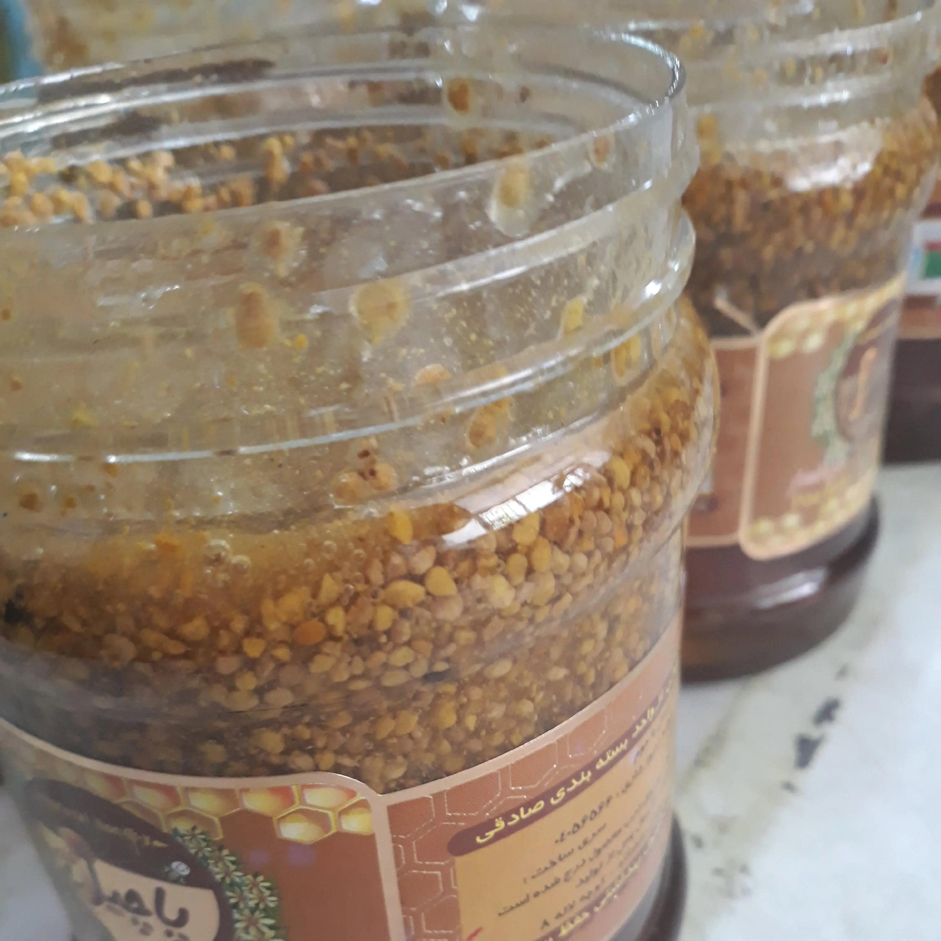 بمب انرژی پاچیل طلایی که شامل عسل چند گیاه زول وحشی و گرده گل میباشد. گرده گل یا پولن یکی از فرآوردههای مهم زنبور عسل به شمار میرود که خواص درمانی ویژهای دارد و به عنوان یک مادهی تقویتی هم برای زنبور و هم انسان کاربرد د